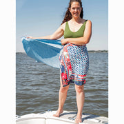 Each Simple Sarong is designed with adjustable buttons and loops to fit a range of body types comfortably. Most styles fit sizes 2–16. (If you’re in between, go up a size for a looser wrap.)